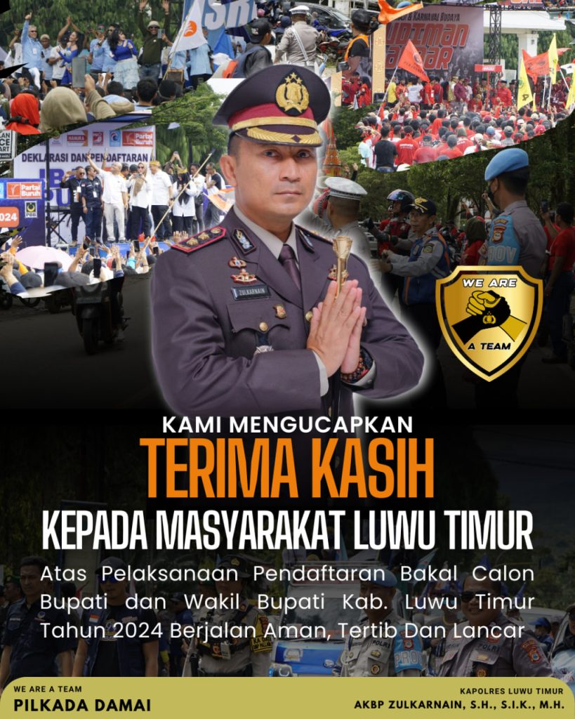 Kami berharap dengan adanya website ini bisa memberikan kemudahan bagi pelayanan yang ada di Polres Luwu Timur, Terima Kasih.